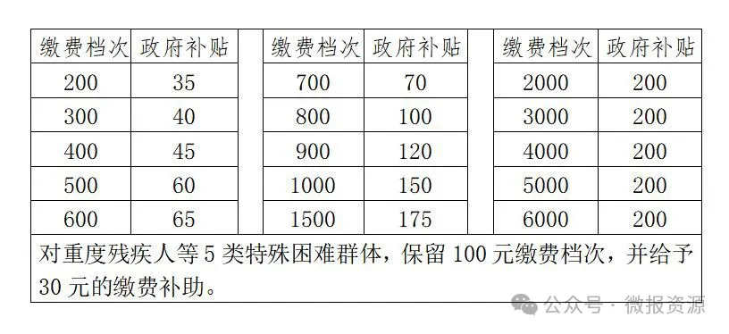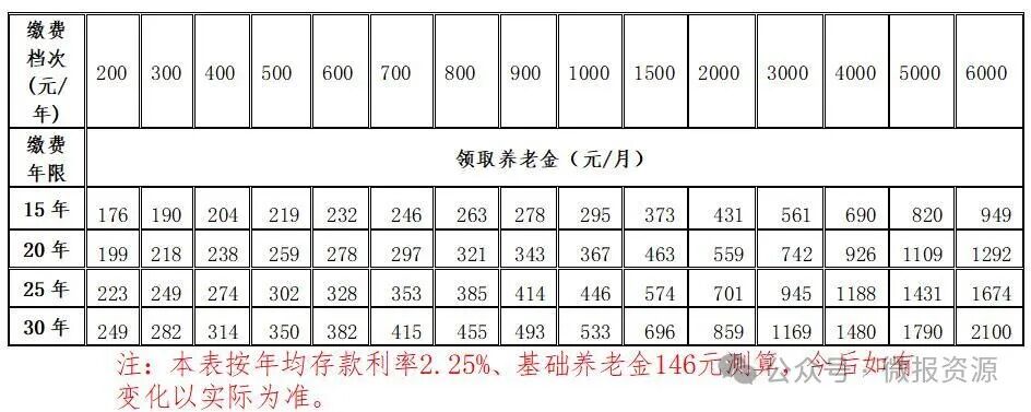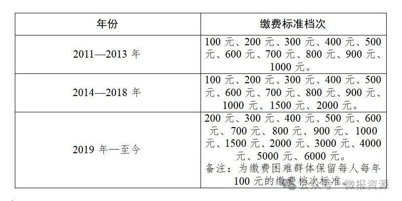 资源县城乡居民基本养老保险缴费档次标准一览表