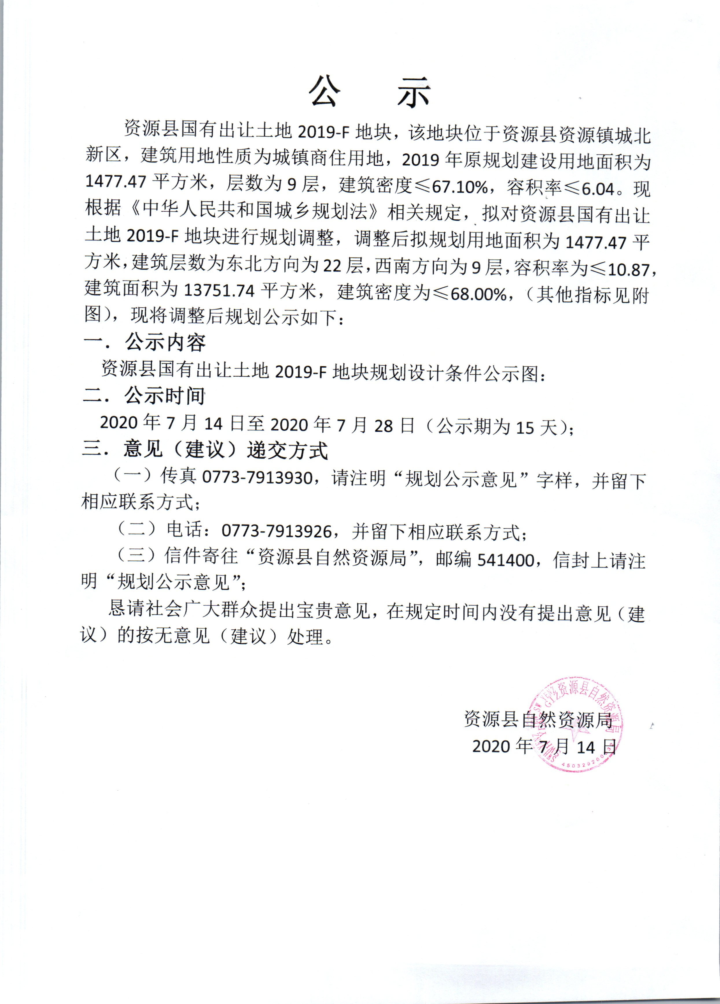 资源县国有出让土地2019-F地块公示