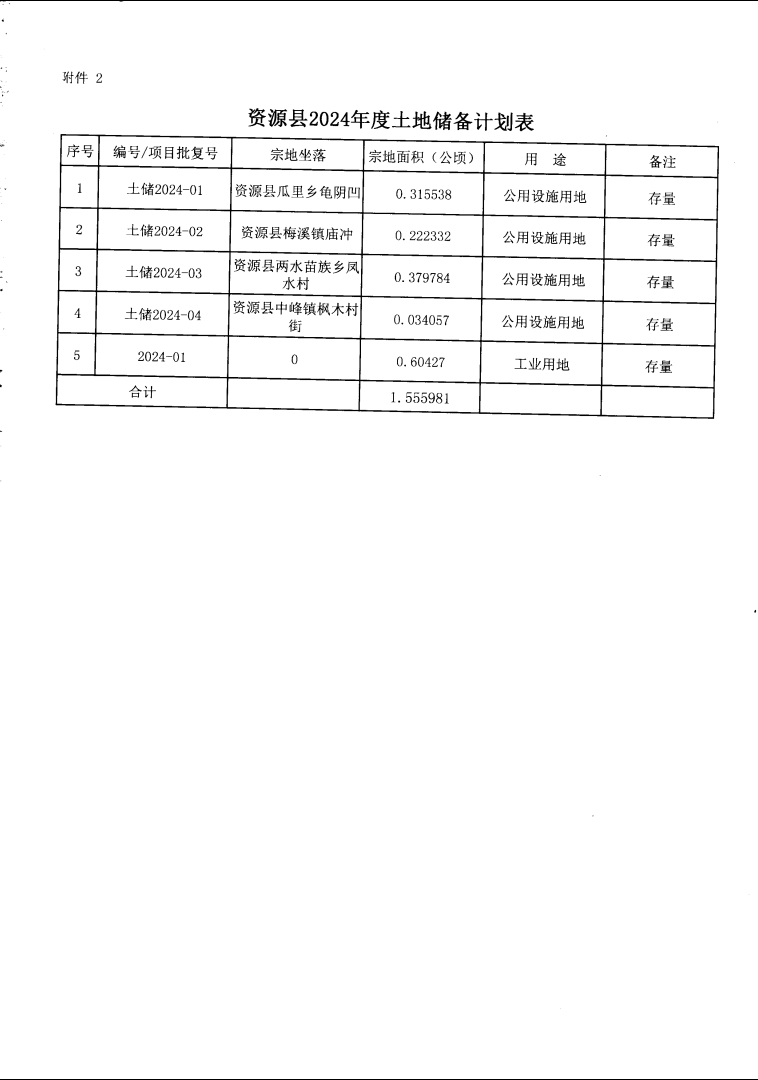 资源县2024年国有土地储备供应计划.pdf