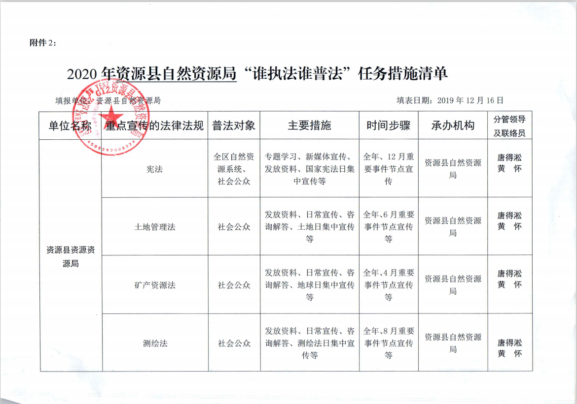 2020年资源县自然资源局“谁执法谁普法”任务措施清单