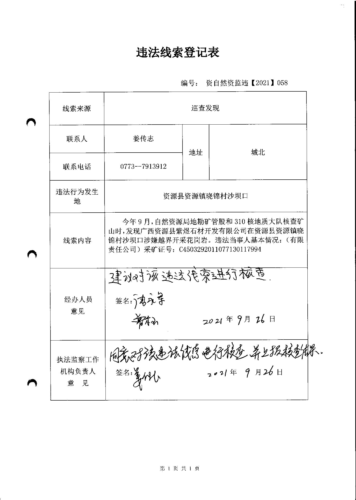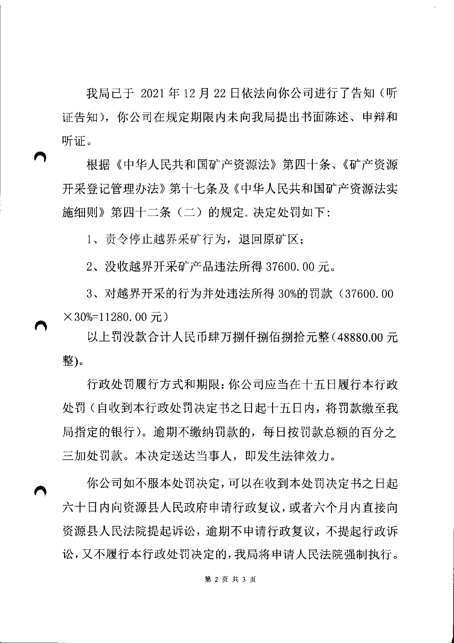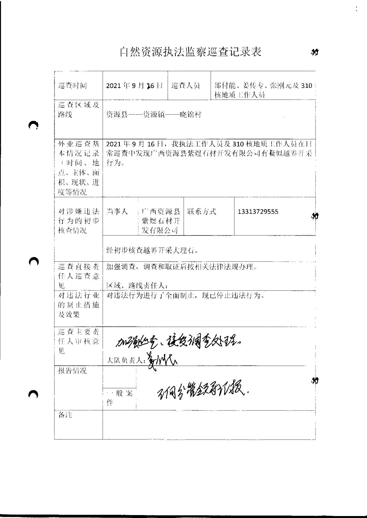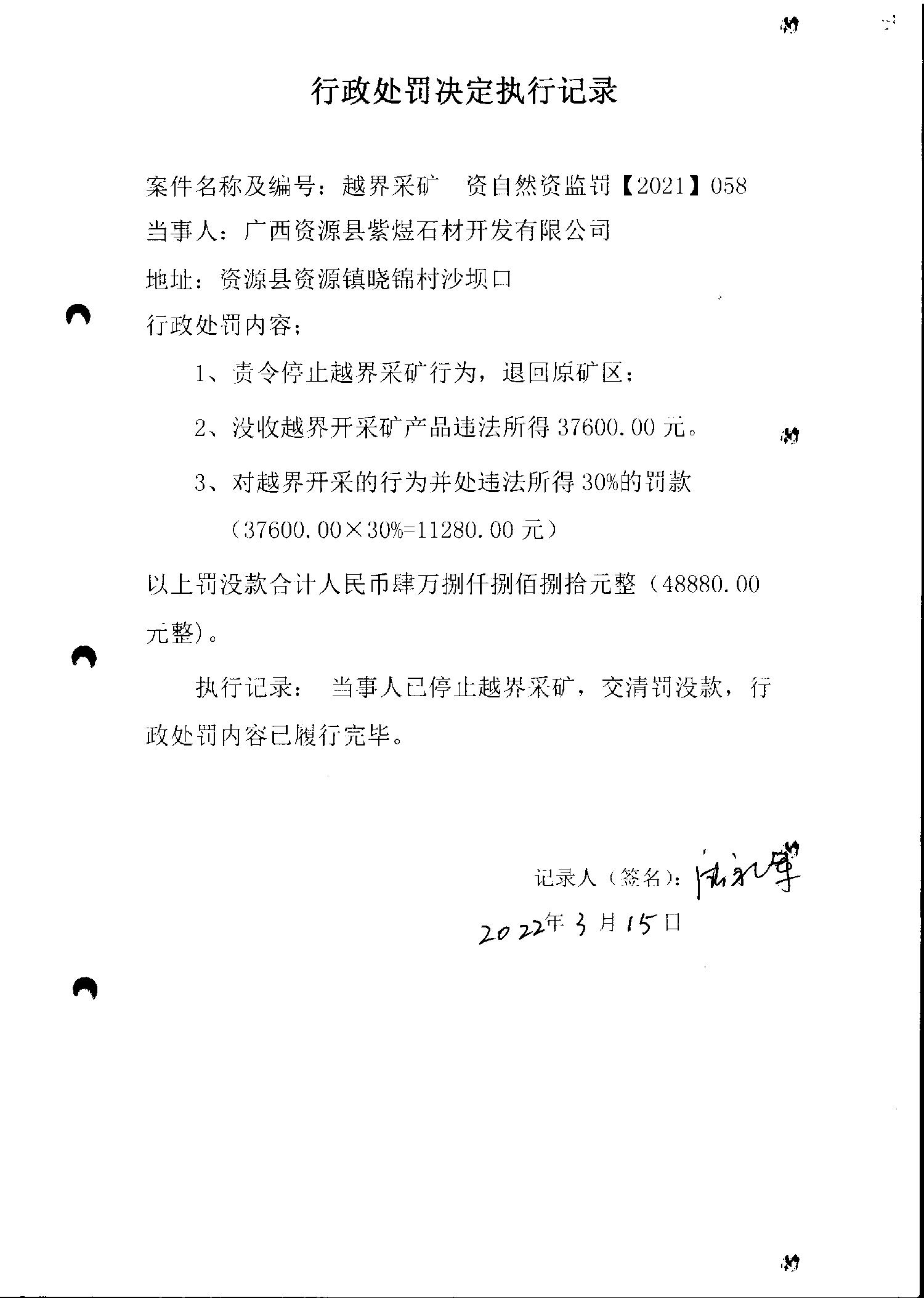 广西资源县紫煜石材开发有限公司行政处罚决定书