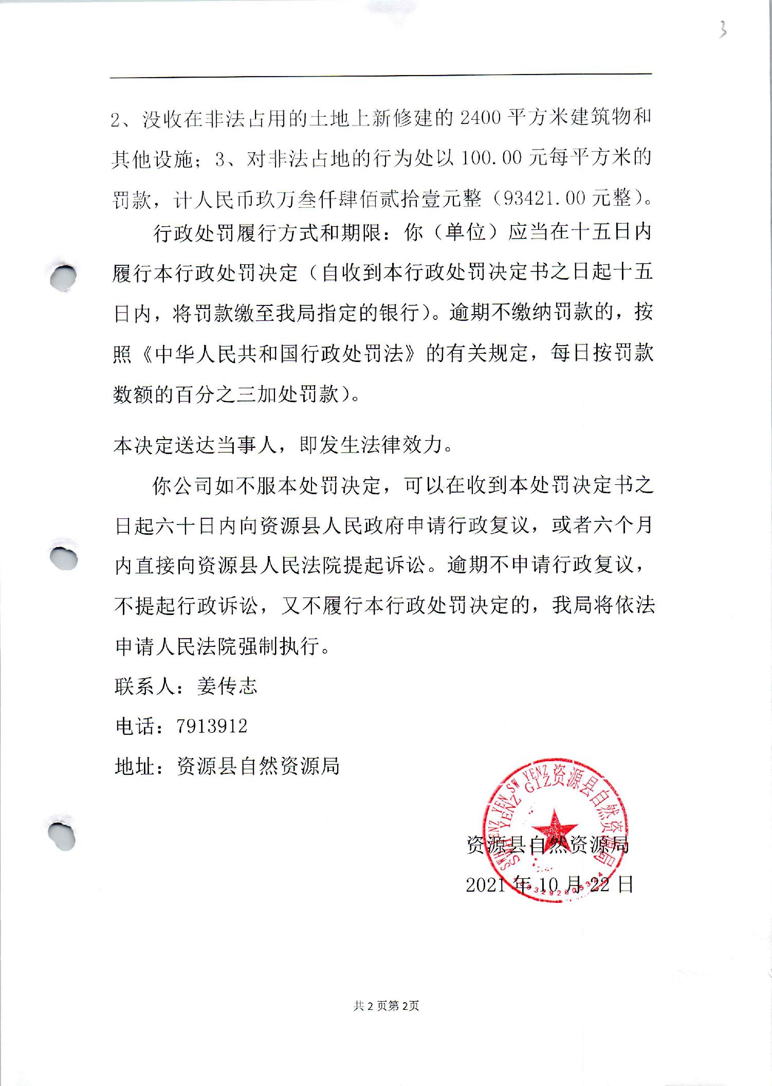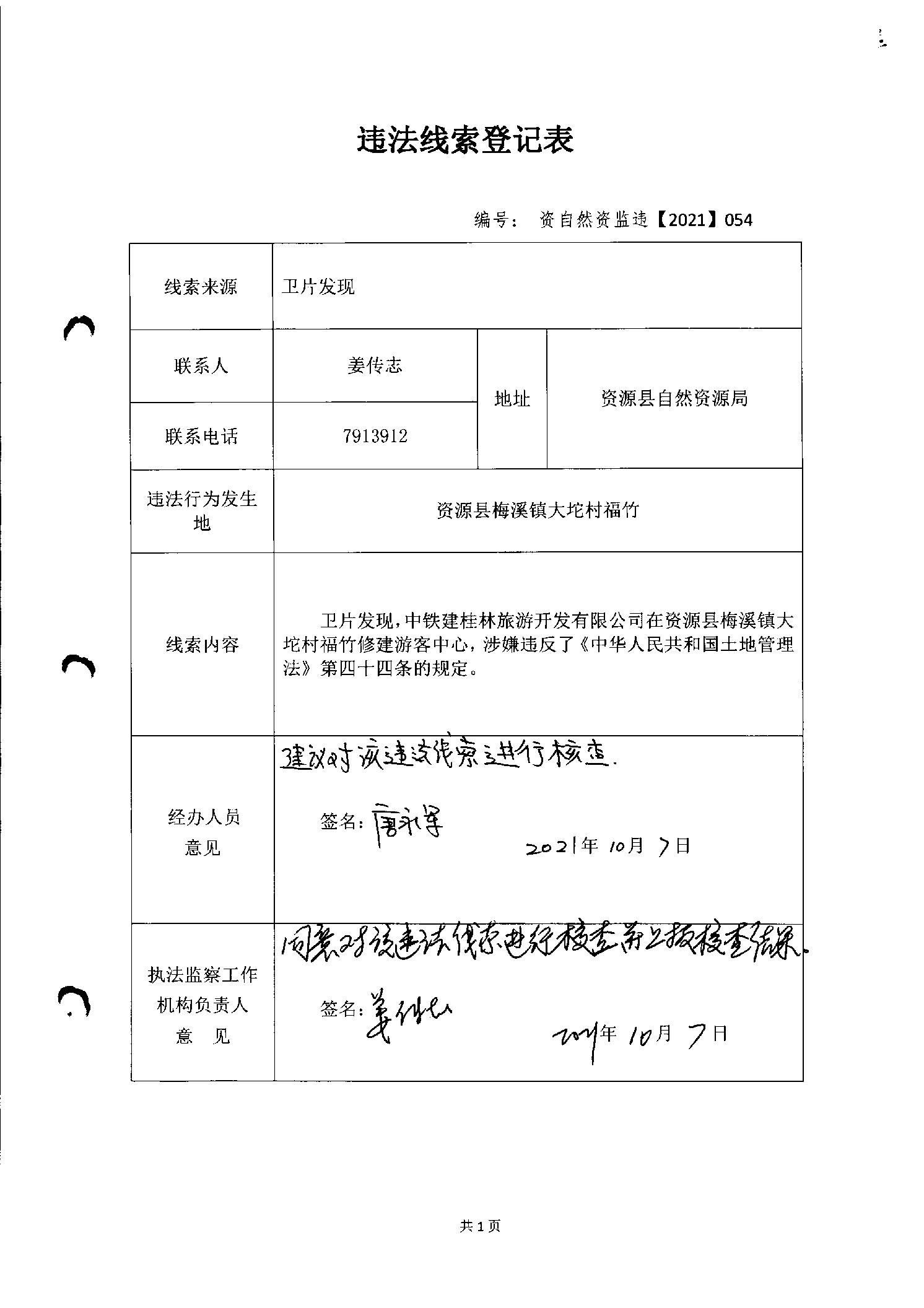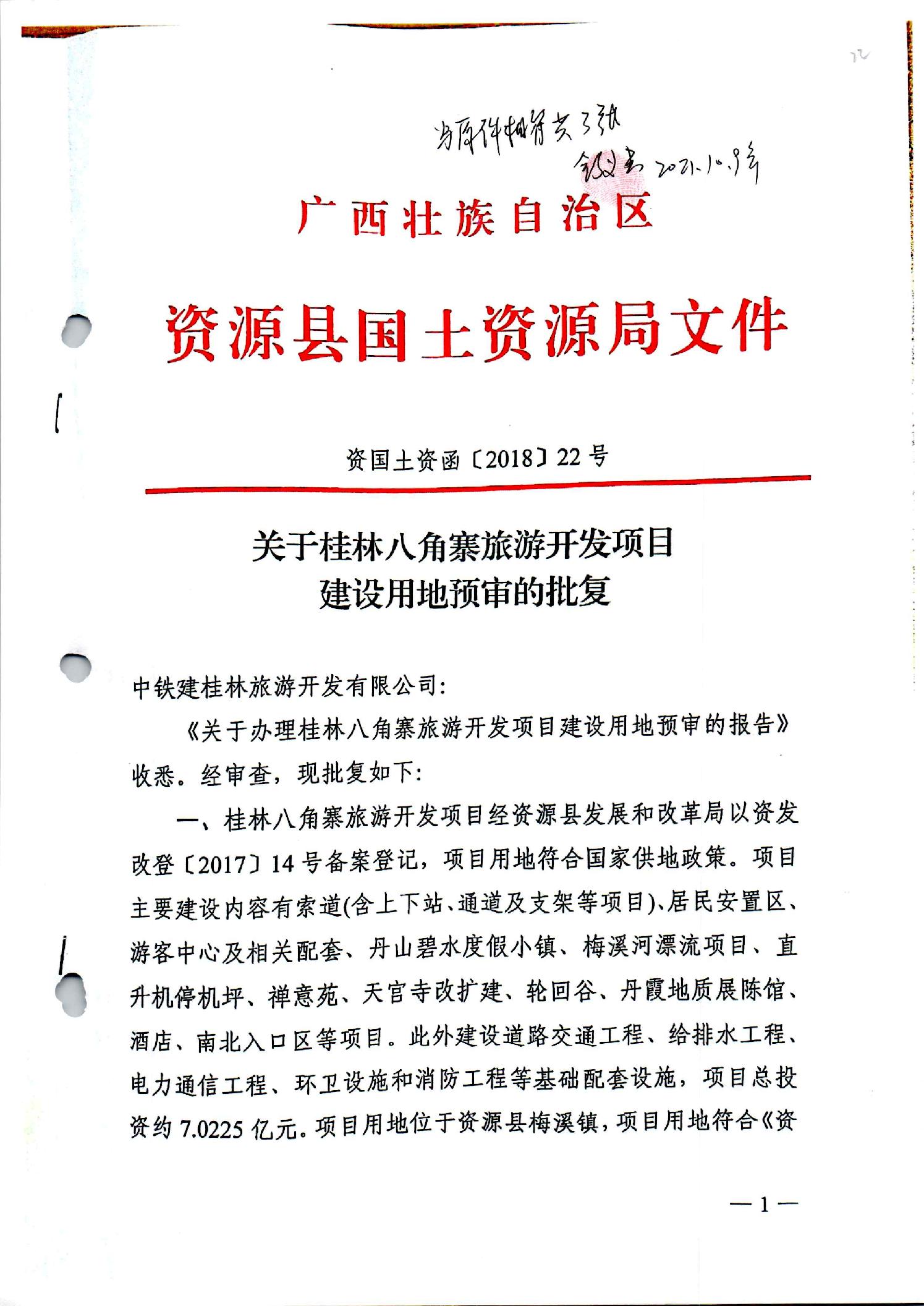 中铁建桂林旅游开发有限公司违法占地修建游客中心行政处罚书