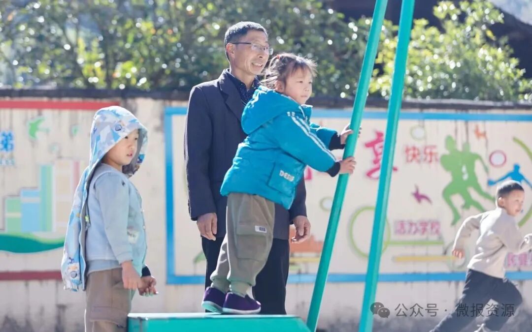 下课铃声响起,孩子们齐刷刷地冲出教室,操场上瞬间充满了欢声笑语。正是闹腾的年纪,孩子们一会爬篮球架,一会爬树,曾老师就在一边紧张地盯着。年纪最小的女孩因奔跑时没站稳,曾老师仿佛背后长眼一般,迅速转身,一把稳稳地扶住了孩子的胳膊。“慢些跑。”他蹲下身,拍了拍孩子裤子上的灰,语气里没有责备,只有放心不下地叮嘱,“玩游戏要看着路,摔伤了怎么办?”