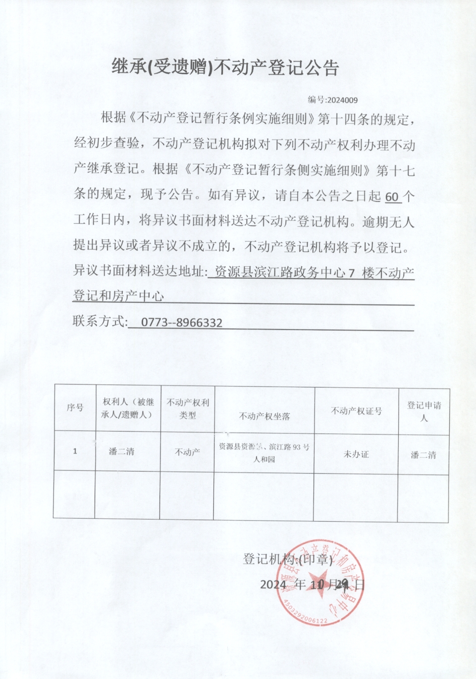 2024-10-29 16:25 来源:不动产登记和房产交易中心 作者:资源县自然资源局