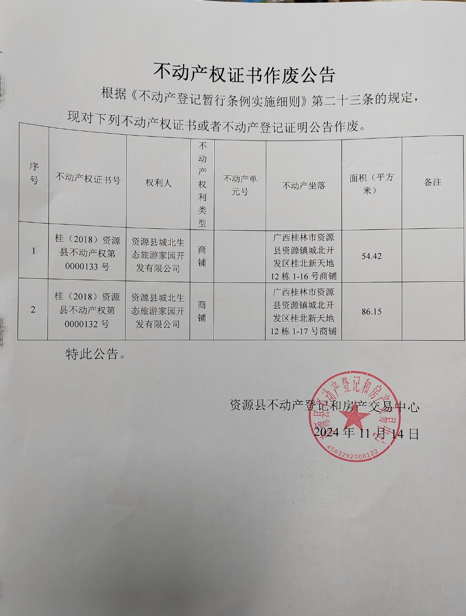 不动产权证书作废公告