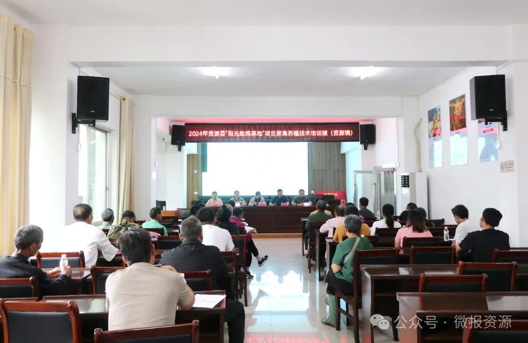 活动当天,县残联首先在资源镇人民政府7楼会议室组织开展“阳光助残基地”项目家禽养殖技术培训班,旨在通过基地技术人员从家禽饲养、管理、疾病防治等方面并结合养殖过程中的相关实例进行详细讲解,提升残疾人家庭的养殖能力和技术水平,巩固拓展脱贫攻坚成果。