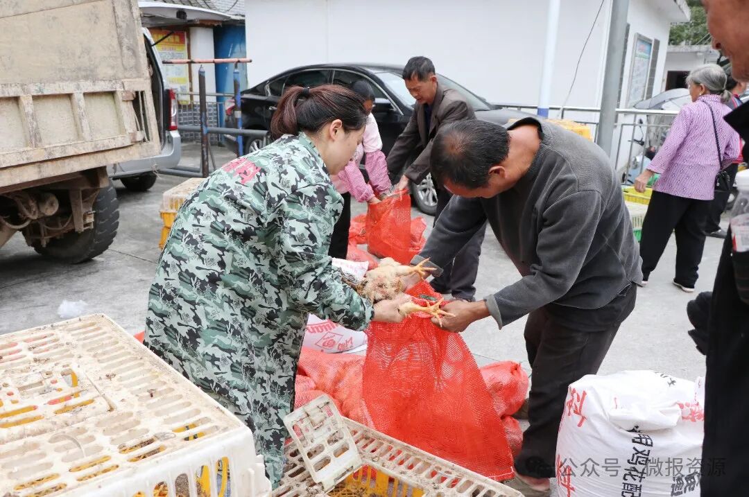 培训结束后,大家来到资源镇广场,残联工作人员与志愿者一同搬运鸡、鸭苗和饲料,帮助残疾农户把鸡苗或鸭苗装袋、装车。残疾农户按照名单依次签到领取物资,个个喜上眉梢,纷纷表示回去后要精心养殖,摸索经验,努力通过发展产业过上幸福生活。