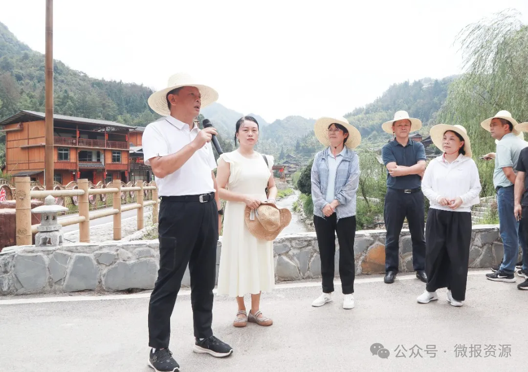 ▲黄钦、王凤玲、陈育勤、容小敏等县四家班子领导带领有关单位和部分企业家在两水苗族乡小凤水村调研乡村旅游产业发展工作