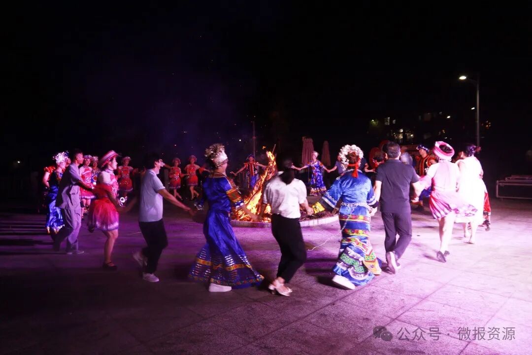 ▲黄钦一行在两水苗族乡塘洞村参加篝火晚会