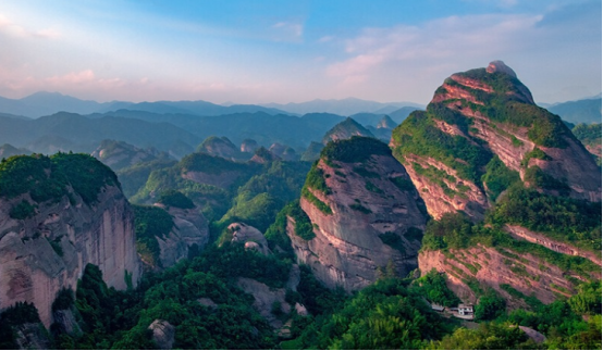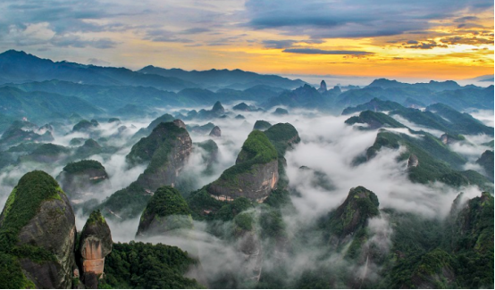 桂林丹霞·八角寨,世界自然遗产,国家森林公园,国家地质公园,国家4A级景区,被《中国国家地理》杂志评选为“中国最美七大丹霞”之一。分布40多平方公里,主峰海拔818米,因主峰有八个犄角而得名,是岭南地区夏季避暑、冬季赏雪的绝佳胜地。