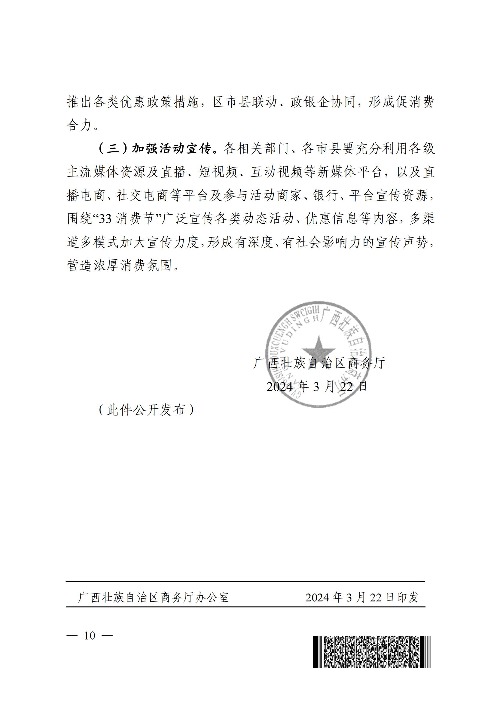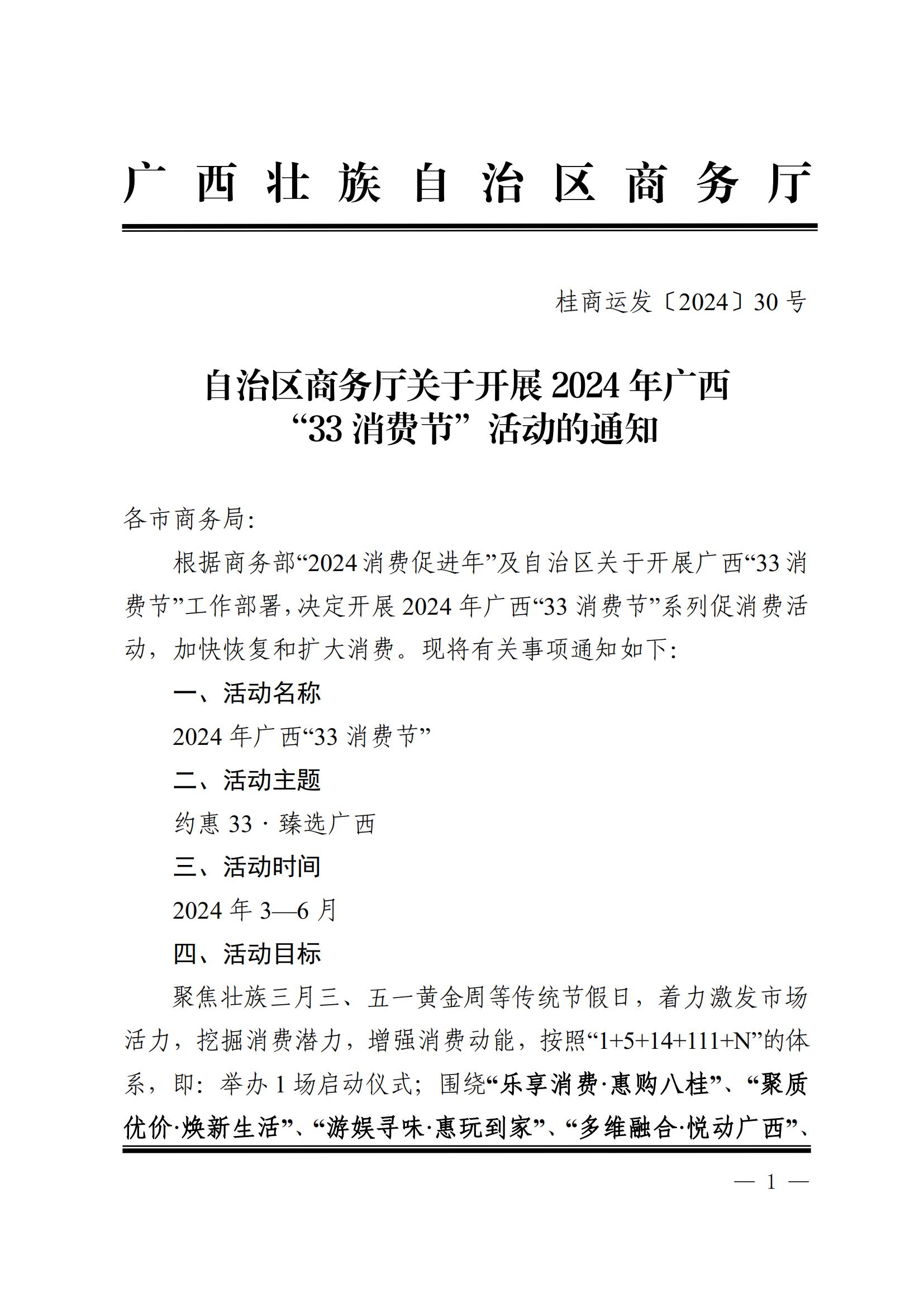 自治区商务厅关于开展2024年广西“33消费节”活动的通知