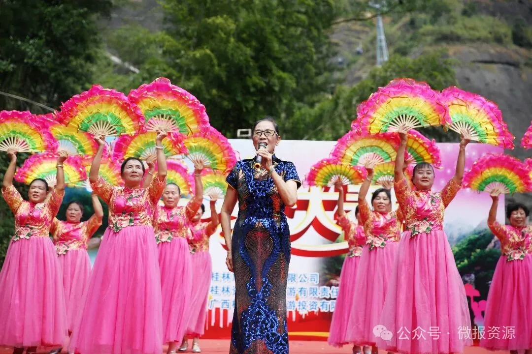 蓝天为幕,青山作景。9月13日,由桂林旅游股份有限公司主办,桂林资江丹霞旅游有限责任公司、广西桂林纵悦旅游投资有限公司联合承办的第一届“资源·丹霞杯”广场舞大赛在资江·天门山景区拉开帷幕,来自全市各县区的中老年广场舞爱好者组成的十支参赛队伍齐聚于此,以舞会友,在青山绿水间展示他们的活力与风采。