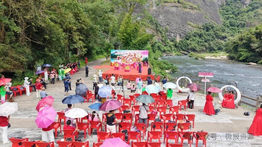 活动期间,参赛者与游客们不仅体验了资江漂流,乘船漫游于清澈江面,沉浸式欣赏两岸丹霞地貌的奇幻景观;还沿着蜿蜒的山间栈道漫步而上,换乘观光索道,登顶至绝壁观景平台,一览磅礴壮丽的自然风光,感叹大自然的鬼斧神工。