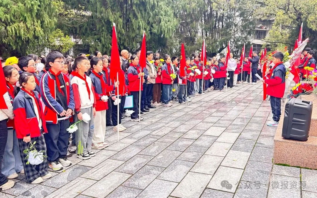 4月1日,资源县第一小学党支部组织该校三、五年级师生及全体党员教师到县烈士陵园开展“热血少年,致敬英烈”清明祭扫主题活动,以党建带队建厚植爱国情怀。