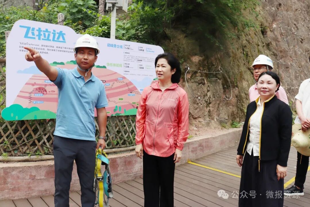 ▲桂林市人民政府副市长郑平在桂林丹霞·八角寨景区调研旅游提升改造项目。资源县政协主席容小敏陪同调研