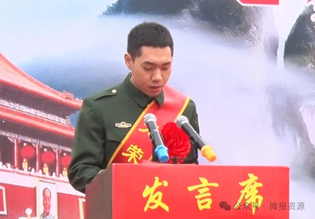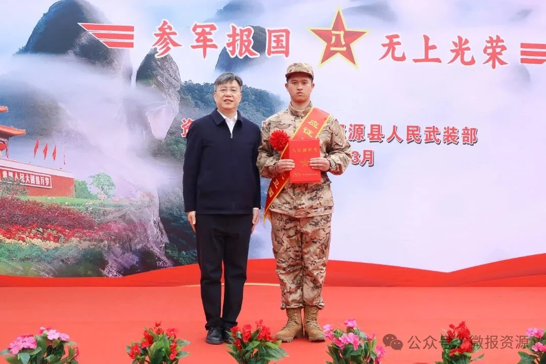 受资源县委书记关小菊委托,陈建华代表县四家班子,向载誉返乡的退伍老兵们,致以最热烈的欢迎和最崇高的敬意!向即将身披戎装、奔赴军营的新兵战友们,表示最热烈的祝贺!向辛勤付出的征兵工作者、默默支持的新兵家属,以及关心我县国防和双拥工作的社会各界人士,表示最衷心的感谢!他说,资源县始终坚持以习近平强军思想为指引,统筹国防建设与经济社会发展,扎实推进双拥工作,不断完善退役军人服务保障体系,用心用情让军人军属受尊崇、退役军人有依靠。希望退役老兵永葆军人本色,退役不退志、返乡立新功,积极投身家乡建设;希望全体新兵到部队后,铸牢忠诚之魂、锤炼过硬本领、严守纪律规矩,努力成为新时代“四有”军人,为家乡争光、为祖国添彩。资源县委、县政府将持续抓实优抚政策、搭建创业平台、强化服务保障,与全体军民同心同向、聚力前行,不断巩固军政军民团结,奋力书写资源县国防建设和经济社会发展的新篇章!
