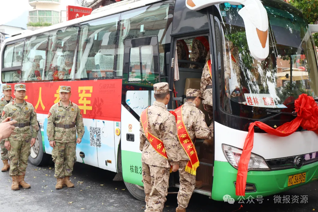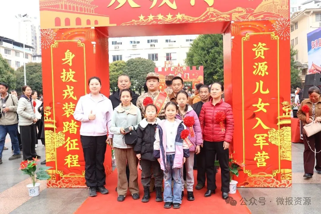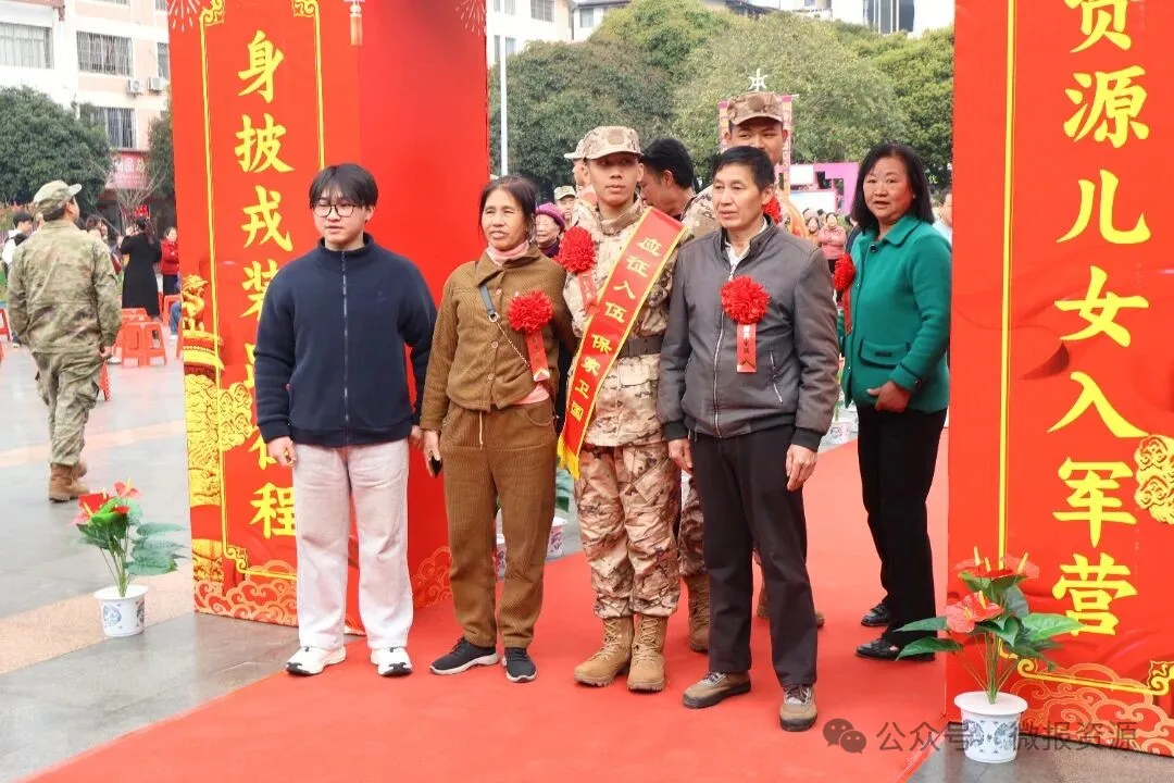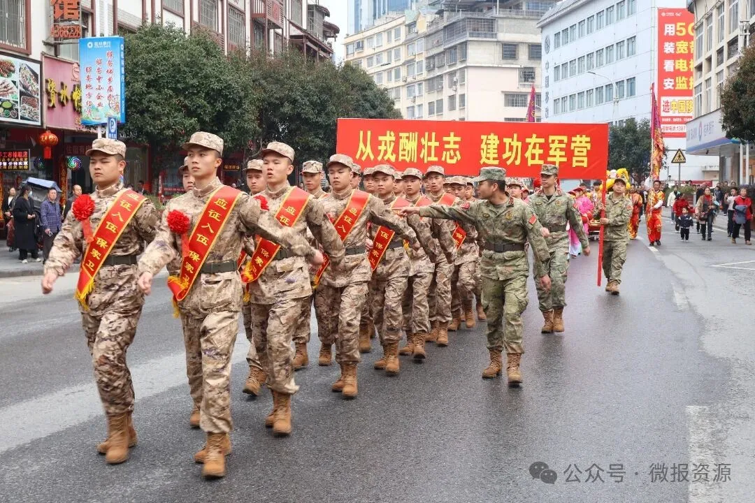 铮铮誓言,不负韶华。仪式结束后,少先队员仪仗队、秧歌队、舞狮队一路欢送,新兵们身着戎装、胸佩红花,个个英姿勃发、意气风发,在铿锵锣鼓与热烈喜庆的氛围中,踏上奔赴军营的专车。家乡的深情厚谊,将伴随他们开启崭新的军旅征程,为祖国的国防事业贡献来自资源的青春力量。