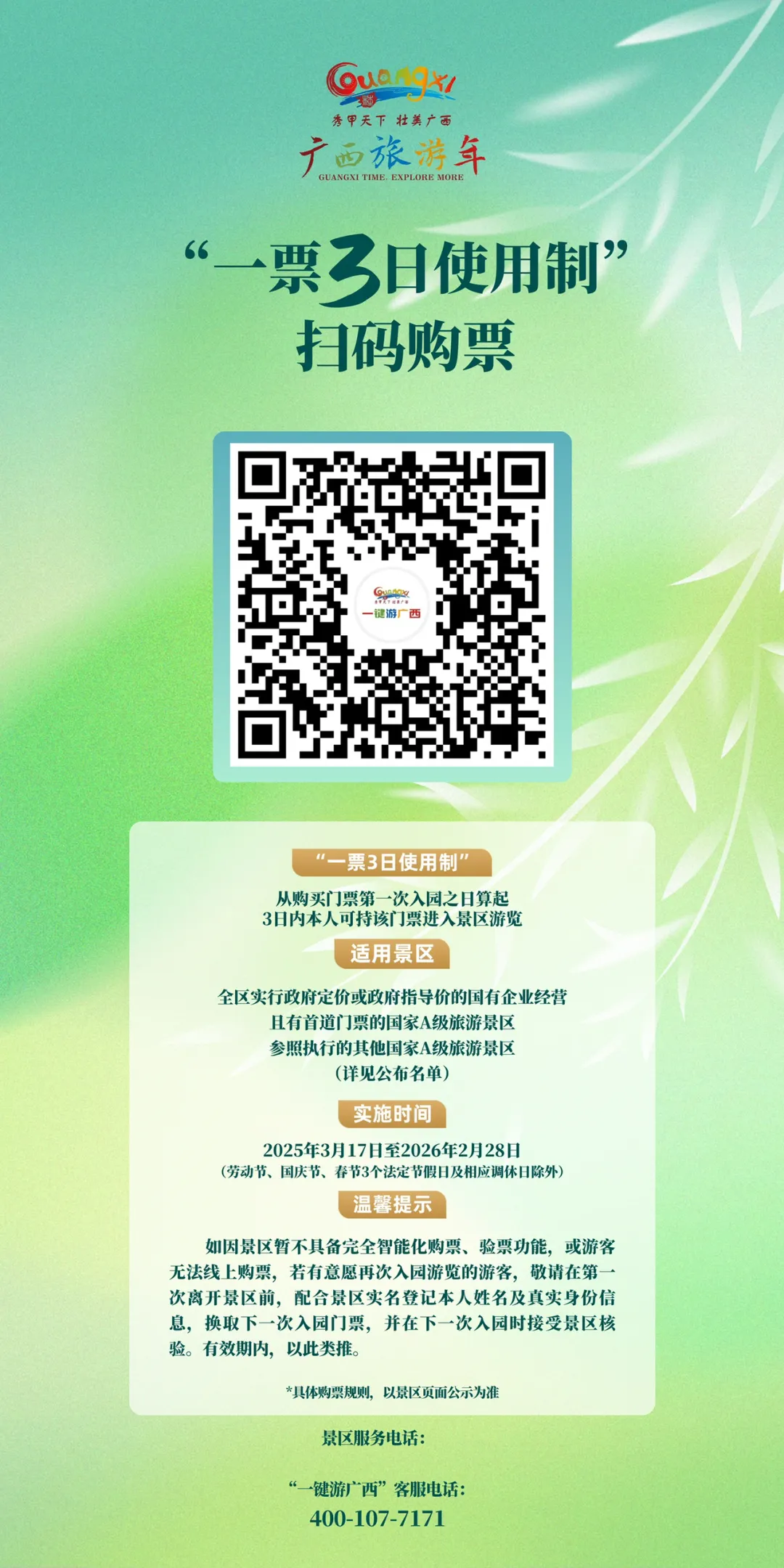 朋友们!最新消息!广西国家A级旅游景区“一票3日使用制”操作指引已公布,今天开始就能购票!