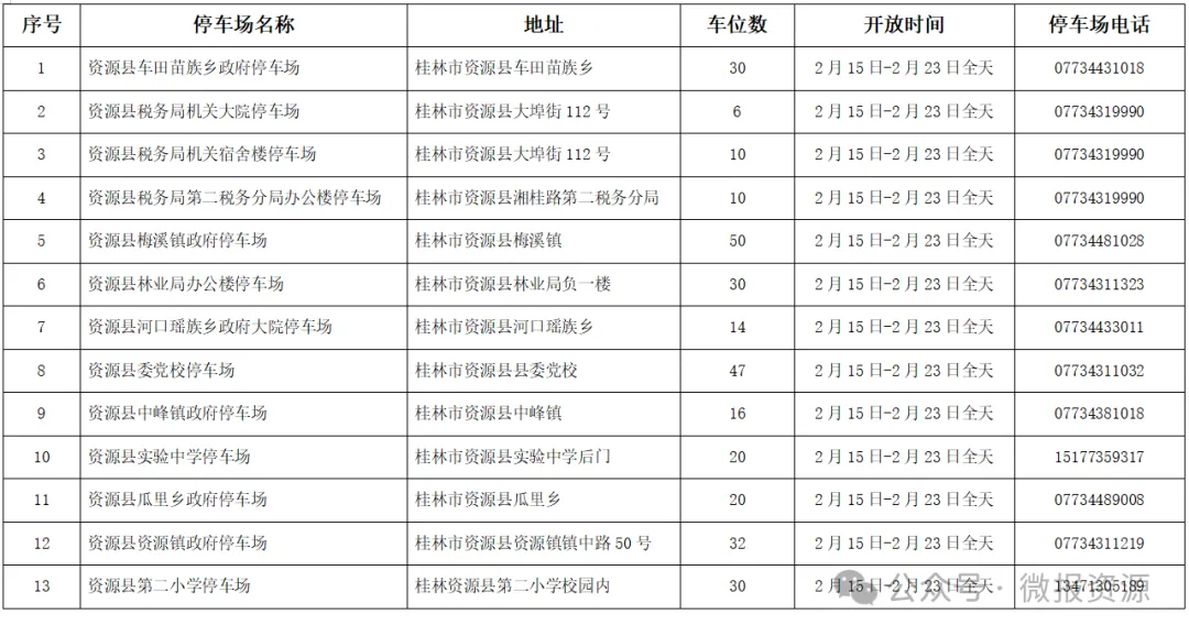 好消息!2026年春节假期资源县部分停车场免费开放啦