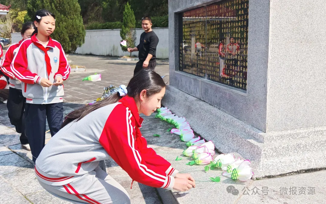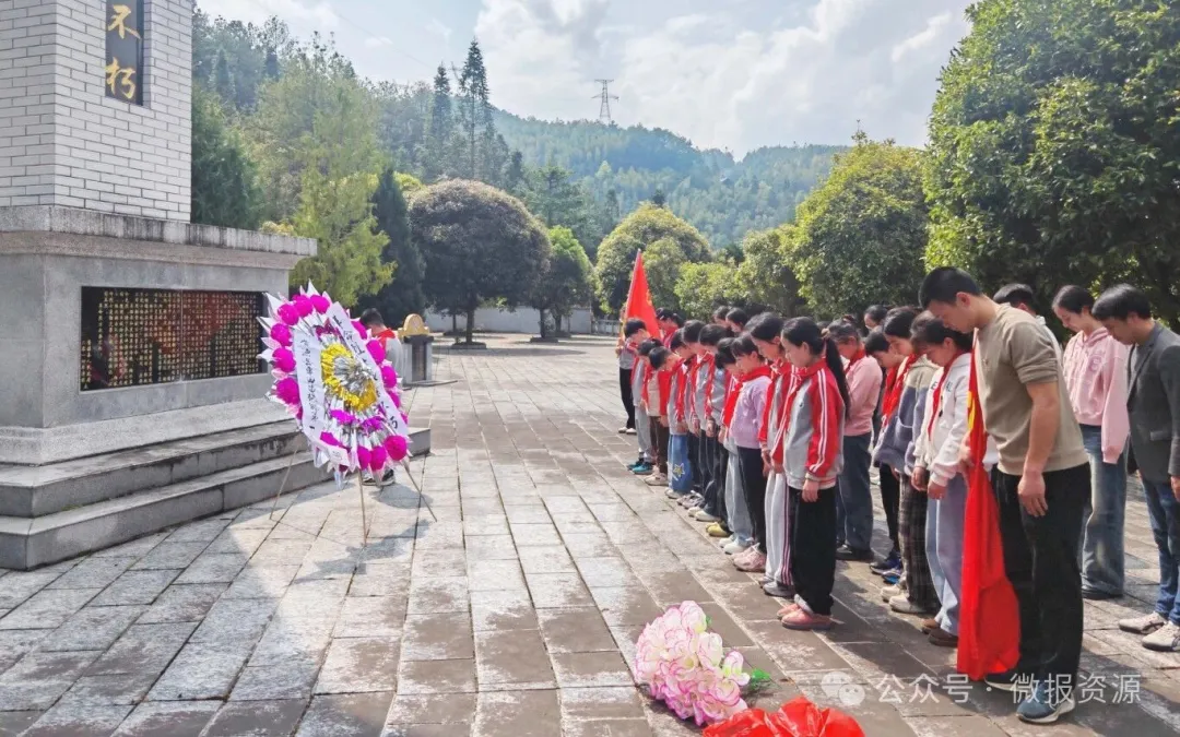 活动中,大家整齐列队、神情肃穆,在烈士纪念碑前肃立。少先队员代表缓缓走向纪念碑,敬献花圈,师生低头默哀三分钟,以最庄重的方式表达对革命先烈的深切缅怀与崇高敬意。少先队员代表现场讲述革命先烈的英勇事迹,带领同学们重温峥嵘岁月,感悟先烈们不畏牺牲、忠诚报国的革命精神。