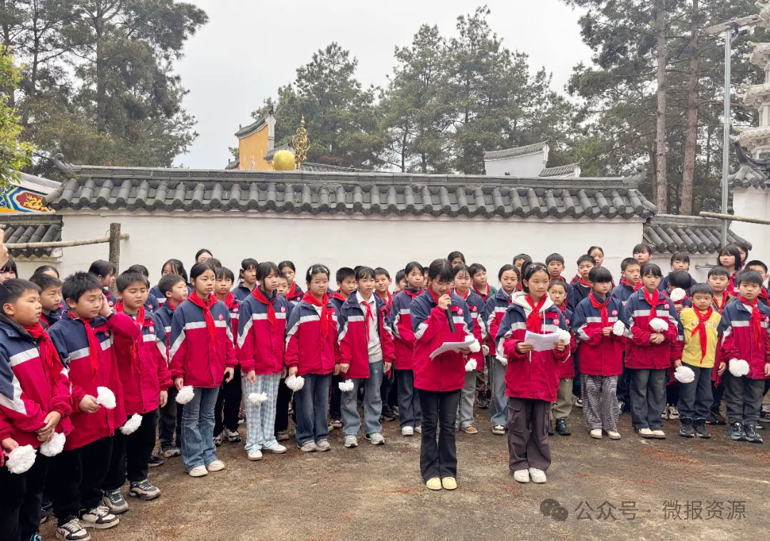 上午9时,师生们统一着装,佩戴红领巾,手持自制小白花,步行抵达烈士墓前。祭扫仪式在庄严肃穆的氛围中开始,全体师生齐唱国歌,向革命烈士敬献花篮并默哀三分钟。现场宣讲了本地革命先烈的英勇事迹,学生代表献词表达传承决心。在少先队大队长带领下,全体学生庄严宣誓,立志争做新时代好少年。仪式最后,师生依次敬献小白花,表达深切哀思。