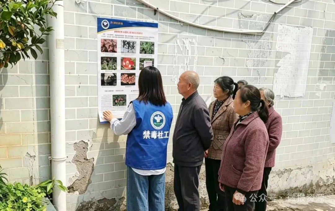 在社区路口的宣传点,工作人员以张贴的禁毒宣传海报为载体,向围拢的村民开展现场宣讲。通过图片对比,详细讲解了毒品原植物的生长特征与辨别方法,让村民们看得懂、认得清、记得住,引导大家主动参与禁种铲毒踏查工作,从源头上防范毒品滋生。